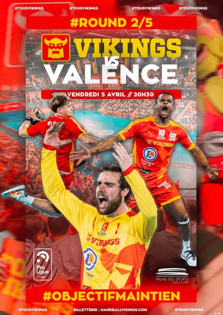 Retrouvez les Vikings le vendredi 5 avril à 20h30 pour la rencontre qui les opposera à Valence au Palais des Sports de Caen La Mer !